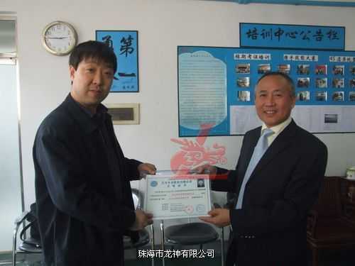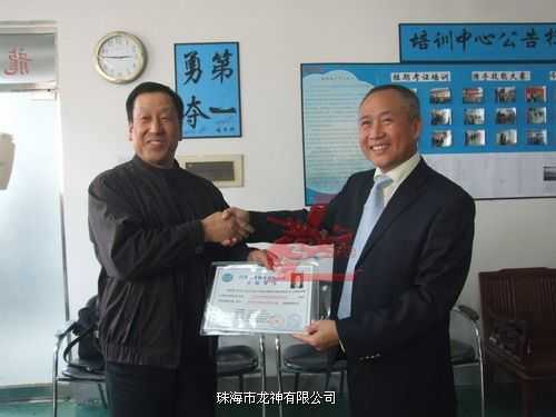 龍神總經理彭小龍為老師頒發(fā)汽車鈑金與噴漆修復技術合格證書