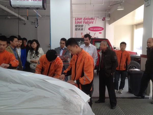 2013年特邀國外專家赴北京車爵士演示車縫泡膠條的使用 本司訊:2013年4月北京晴空萬里,龍神公司特邀英國專家一行五人,來到了北京車爵士進(jìn)行汽車噴涂遮蔽技術(shù)交流。首先公司一行了解車爵士的汽車噴涂情況及詢問了使用的遮蔽工具情況。隨后英國專家針對在汽車噴漆時(shí)難噴涂的車門縫隙、玻璃死角等地方的專業(yè)遮蔽工具的演示。車縫泡沫膠:用于車身所有縫隙的遮蔽,有效隔離及遮蔽漆霧噴入車縫里。 2013-04-08 12091