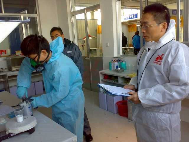 比賽選手正在調(diào)漆