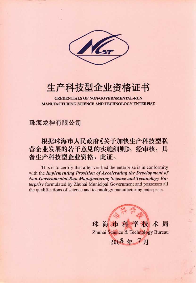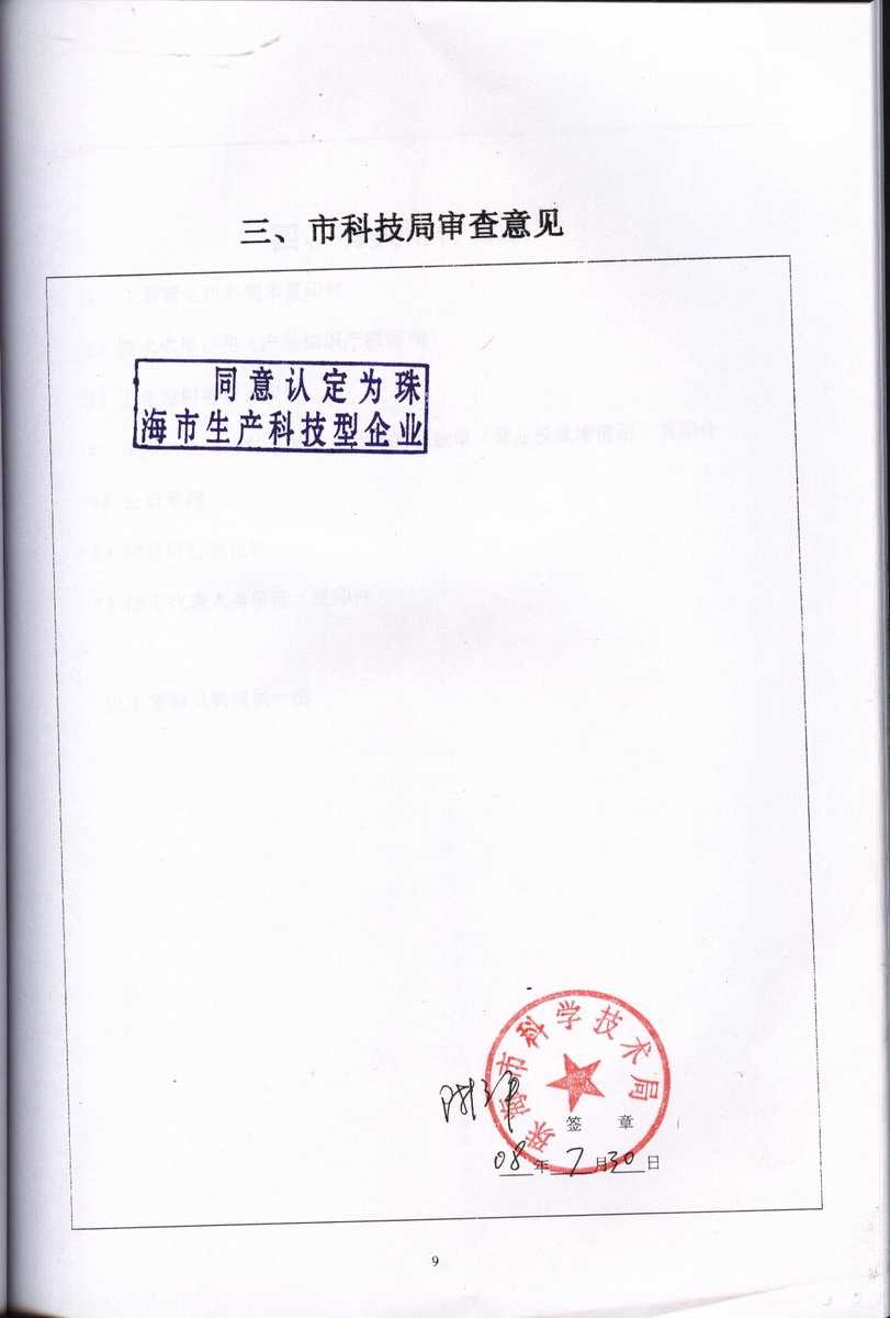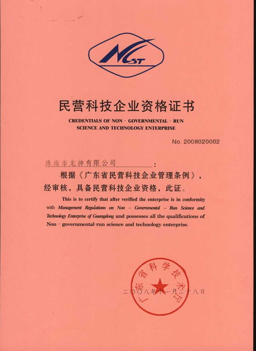 資格證書 一、ISO9001:2008質(zhì)量管理體系認(rèn)證ISO9001:2008質(zhì)量管理體系認(rèn)證證書 二、廣東省民營科技企業(yè)資格證書民營科技企業(yè)資格證書 廣東省民營科技企業(yè) 三、珠海市生產(chǎn)科技企業(yè)證書生產(chǎn)科技型企業(yè) 珠海市生產(chǎn)科技型企業(yè) 認(rèn)定證書 生產(chǎn)科技型企業(yè)資格證書(以上圖片均可點(diǎn)擊放大) 2012-11-27 37128