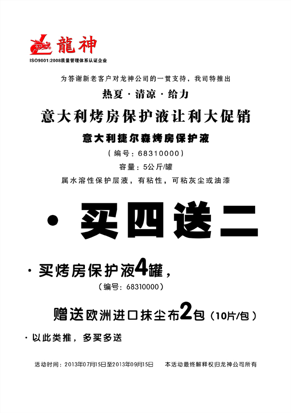 “熱夏。清涼。給力”意大利烤房保護(hù)液讓利大促銷。
